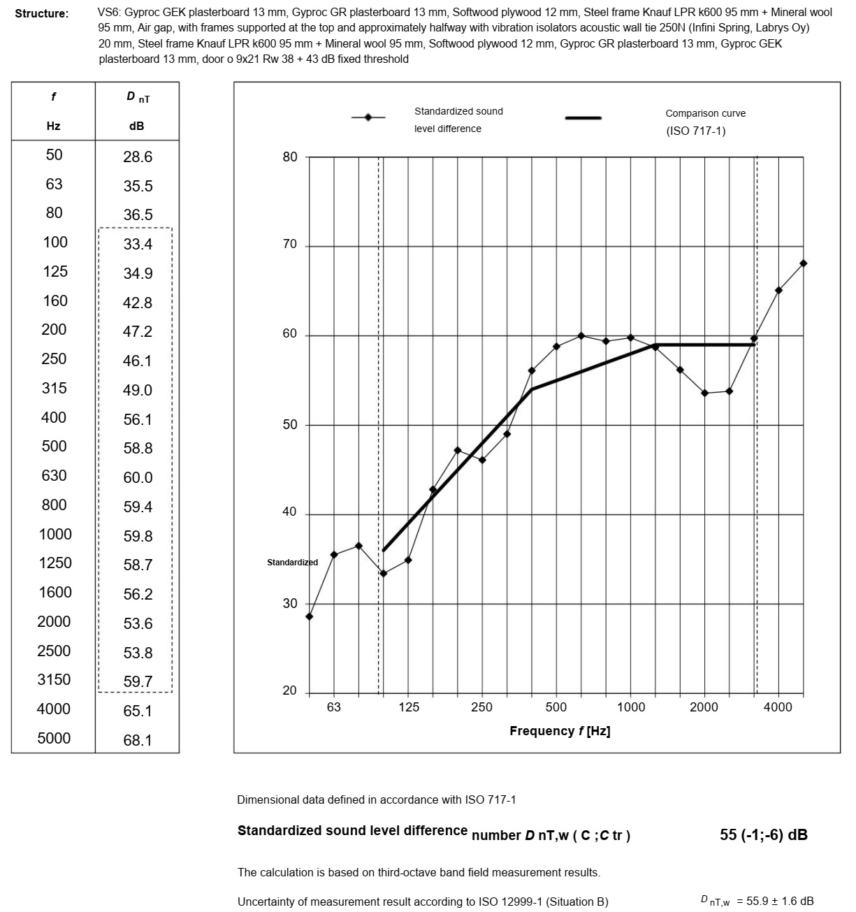 Figure 1. Standardized sound level No 1 DnT,w 55 dB