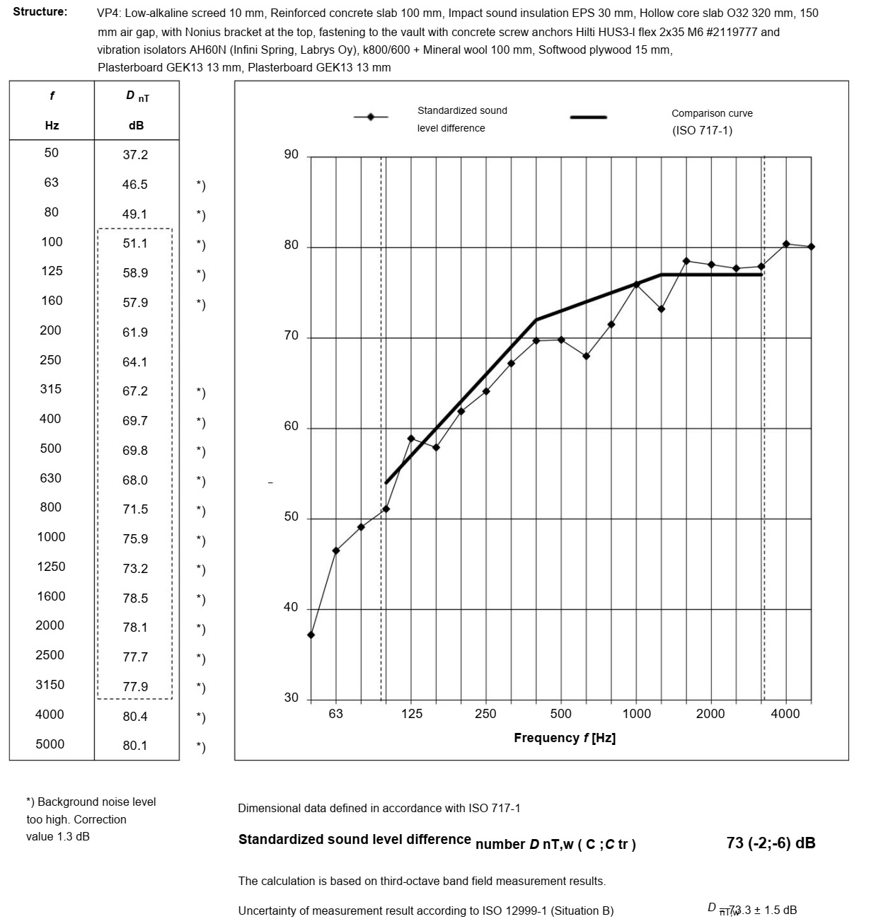 Figure 2. Standardized sound level No 2 DnT,w 73 dB