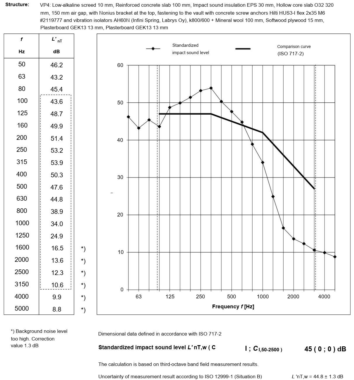Figure 3. Standardized impact sound level No 1 L’nT,w 45 dB
